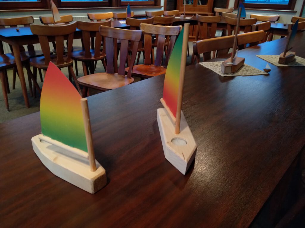 Natürlich wurde auch wieder gebastelt. Dieses Mal sollten aus gehobeltem Kantholz stilisierte Optis bzw. Jollen gebaut werden, die Jollengruppe fertigte Jollen und die Optigruppe Optis. Die Kids waren mit sehr viel Eifer und Erfolg dabei und so bot es sich an, das pro Teilnehmer auch mehrere Fahrzeuge gebaut werden konnten, man war sich einig, das, diese sich auch als Weihnachtsgeschenk sehr gut eignen. (Text: Karsten L.)